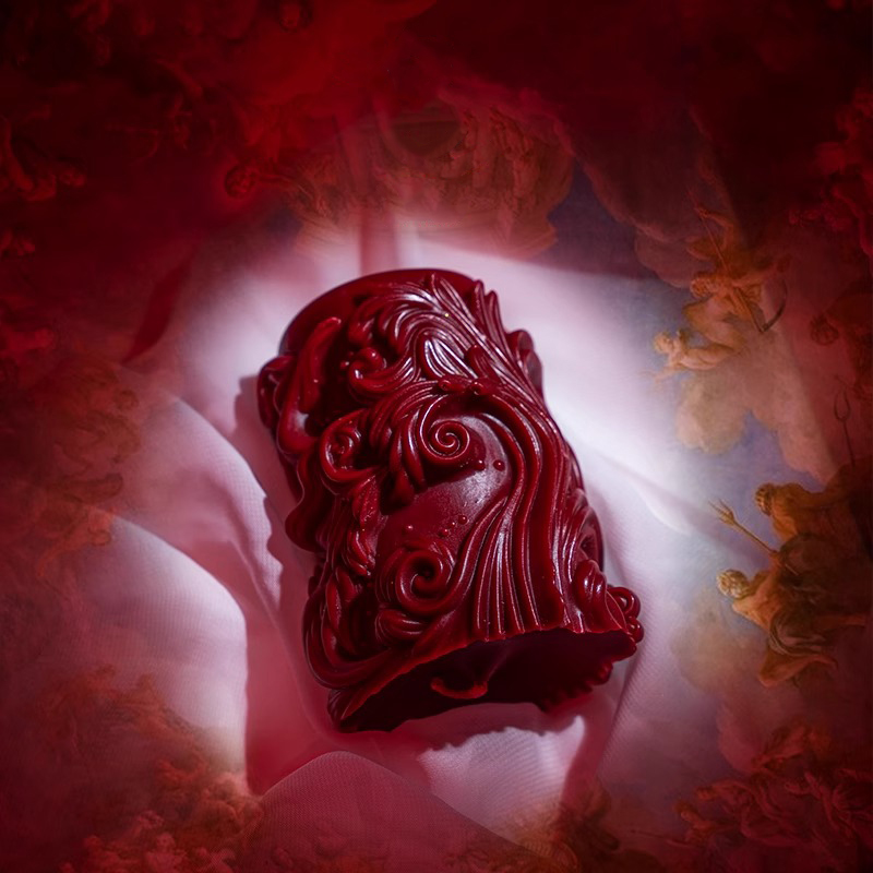 Barokkityylinen matalalämpökynttilä-setti – Obsidian & Rouge – on enemmän kuin kynttilä, se on pieni veistos. Runsaat, barokkityyliset kohokuviot kiertävät koko kynttilän rungon antaen sille ylellisen, lähes rituaalisen ilmeen. Tämä tekee siitä täydellisen sisustuselementin niin makuuhuoneeseen, olohuoneeseen kuin tematiikkaa rakastavan goottikodin alttarille.