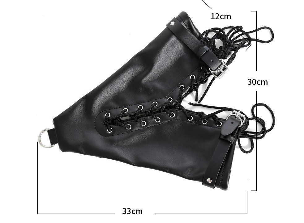 Keinonahkainen rakenne on kevyt, helppo puhdistaa ja miellyttävä ihoa vasten. Nauhoitus edessä sekä säädettävät soljet mahdollistavat hyvän istuvuuden eri kokoisille käyttäjille. Sidonta sopii erityisesti soft bondageen, roolileikkeihin ja tilanteisiin, joissa halutaan korostaa kontrollia ilman äärimmäisiä elementtejä.