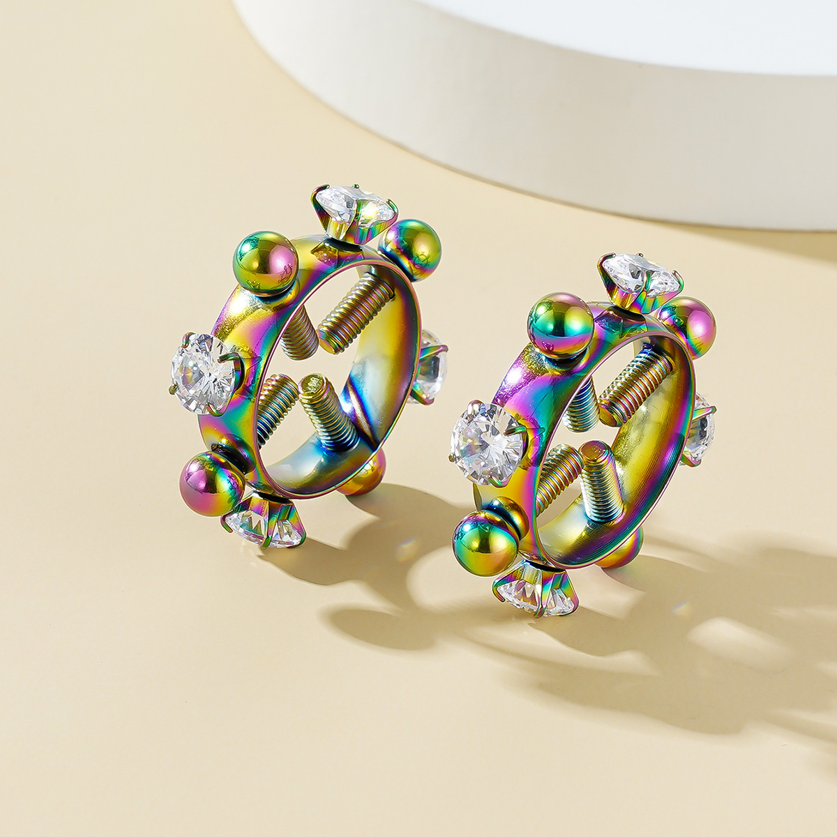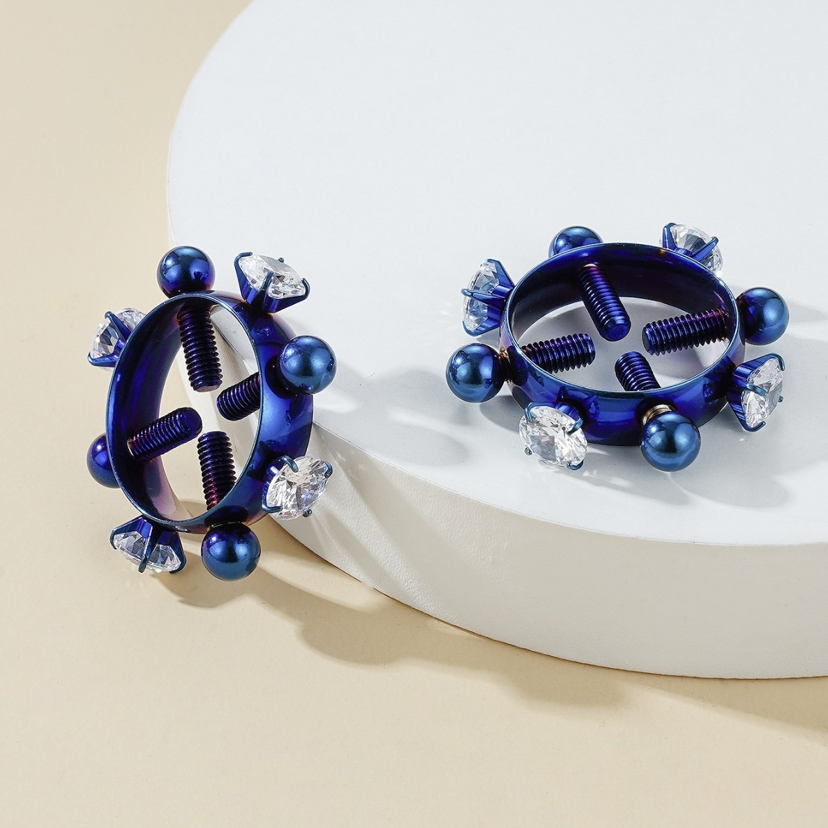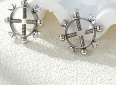 Nämä geometriset nännirenkaat yhdistävät korumaisen estetiikan ja säädettävän tuntuman harkituksi kokonaisuudeksi. Pyöreä muoto, symmetrinen rakenne ja kirkkaat kiviyksityiskohdat tekevät niistä visuaalisesti näyttävän asusteen, joka kiinnittää huomion jo ensisilmäyksellä. Tämä ei ole pelkkä väline, vaan osa kokonaisuutta, jossa ulkonäöllä on merkitystä.