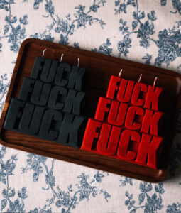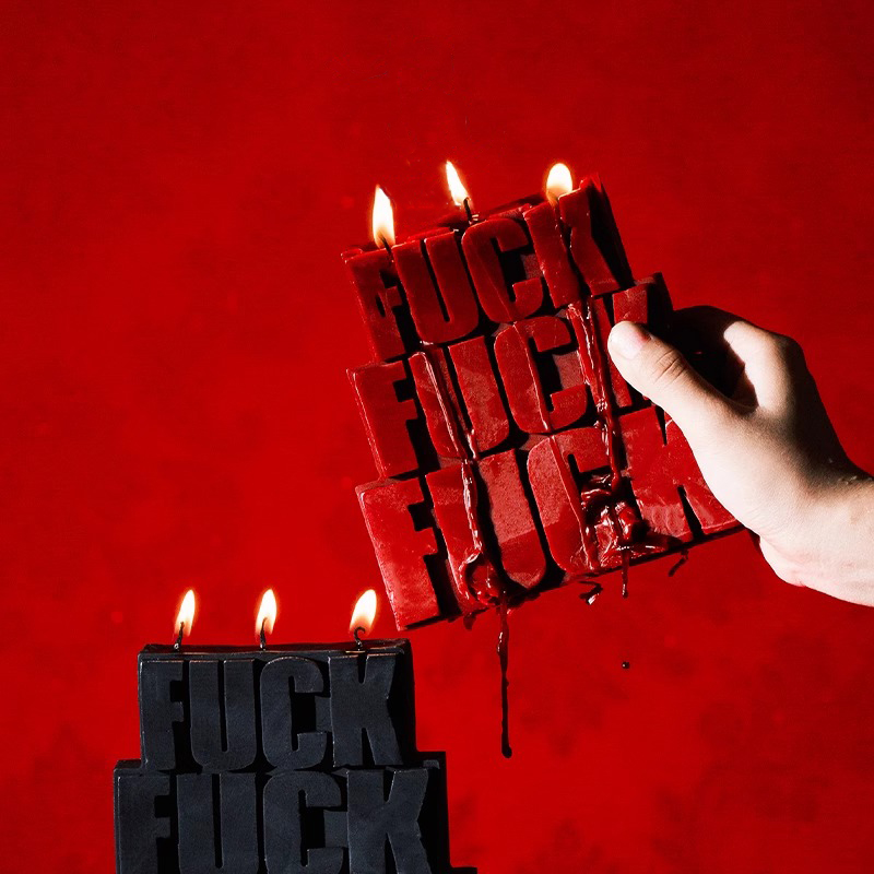 Hierontakynttilä-setti: tämä on se kynttilä, jota et tiennyt tarvitsevasi, mutta et voi olla nauramatta kun näet sen. Kolminkertainen FUCK-teksti kohoaa vahapinnasta kuin pieni anarkian monumentti, ja vahasisältö (soija + kookos + mehiläinen) palaa puhtaammin ja pidempään kuin perus-parafiinikynttilät.