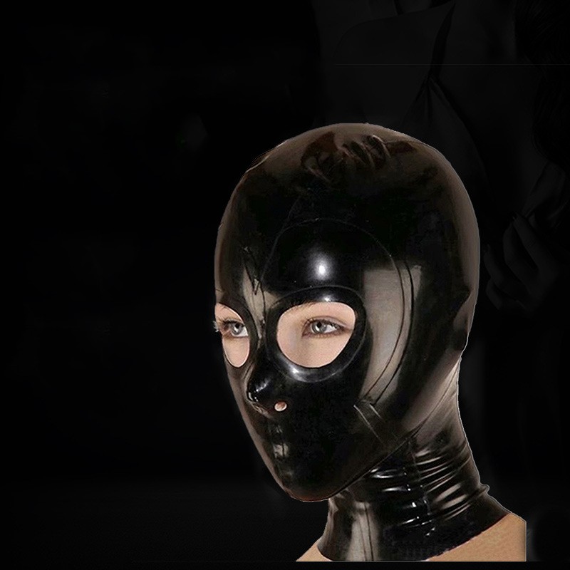Avoimet silmä- ja hengitysaukot mahdollistavat katsekontaktin ja hengityksen, mikä tekee hupusta sopivan myös pidempään käyttöön sekä vallan ja alistumisen leikkeihin. Minimalistinen muotoilu pitää huomion olennaisessa – ei turhia yksityiskohtia, vain puhdas latex ja läsnäolo.