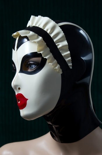 Tämä frilloilla viimeistelty latex-huppu on visuaalisesti vahva ja tunnistettava osa klassista fetish-estetiikkaa. 3D-leikattu rakenne varmistaa istuvuuden, joka myötäilee pään muotoja luonnollisesti ja napakasti.