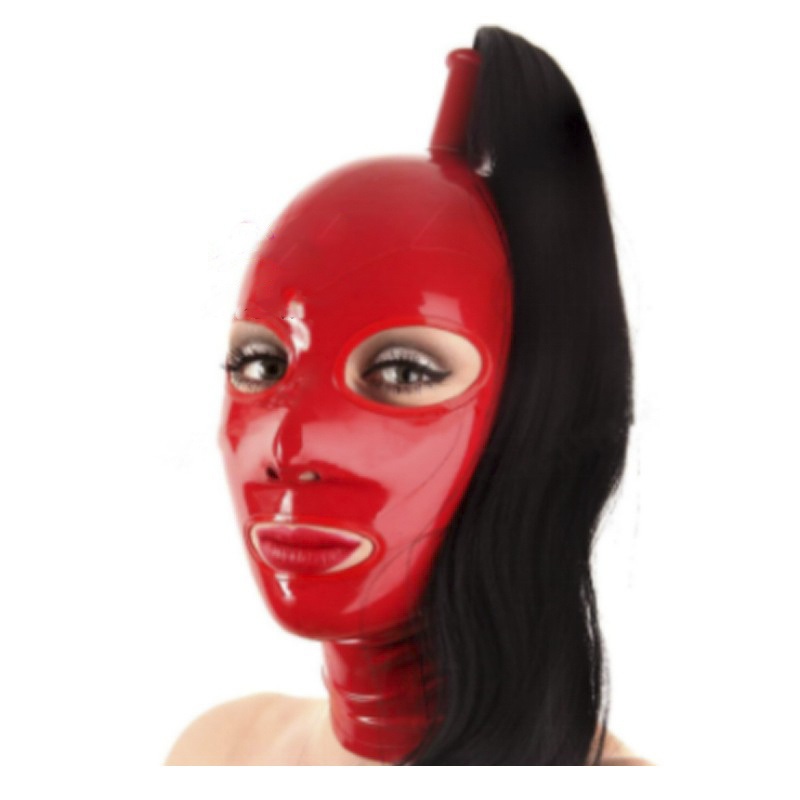 Tämä punainen lateksinen huppu mustalla ponnarilla on suunniteltu niille, jotka haluavat yhdistää fetish-estetiikan, vallan ja visuaalisen voiman. Kiiltävä luonnonlateksi myötäilee päätä tiiviisti, korostaen kasvojen muotoja ja luoden intensiivisen, itsevarman ilmeen.