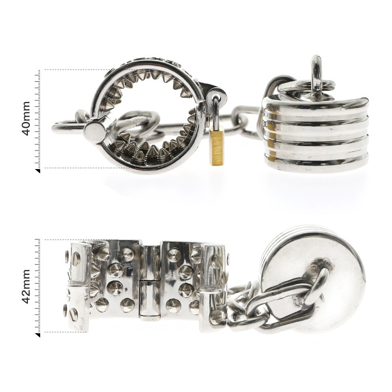 Tämä ei ole kevytkoriste. Piikkipanta  on käsintehty teräksinen hallinnan väline, jonka jokainen ruuvi, ketju ja heijastus on suunniteltu ilmentämään hallintaa ja kurinalaisuutta. 304-luokan ruostumattomasta teräksestä valmistettu runko on peilipintainen ja painava, tuntuen  yhtä vakavalta kuin sen läsnäolo näyttää. Tämä on todellinen teräksen mestariteos – rakennettu kestämään painetta, aikaa ja katseita.
