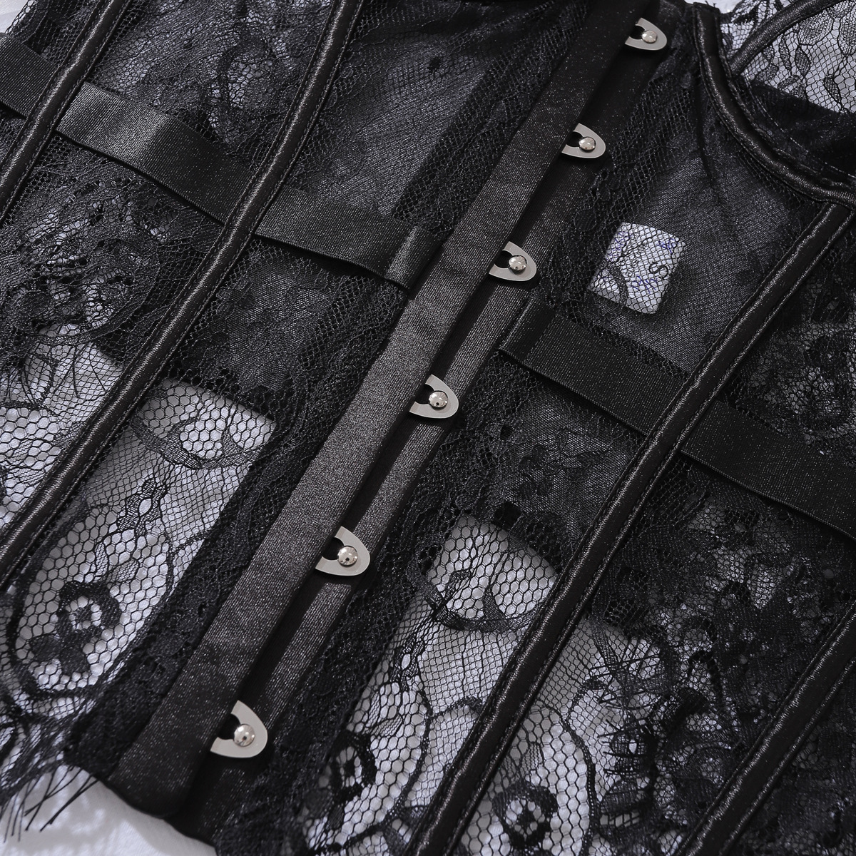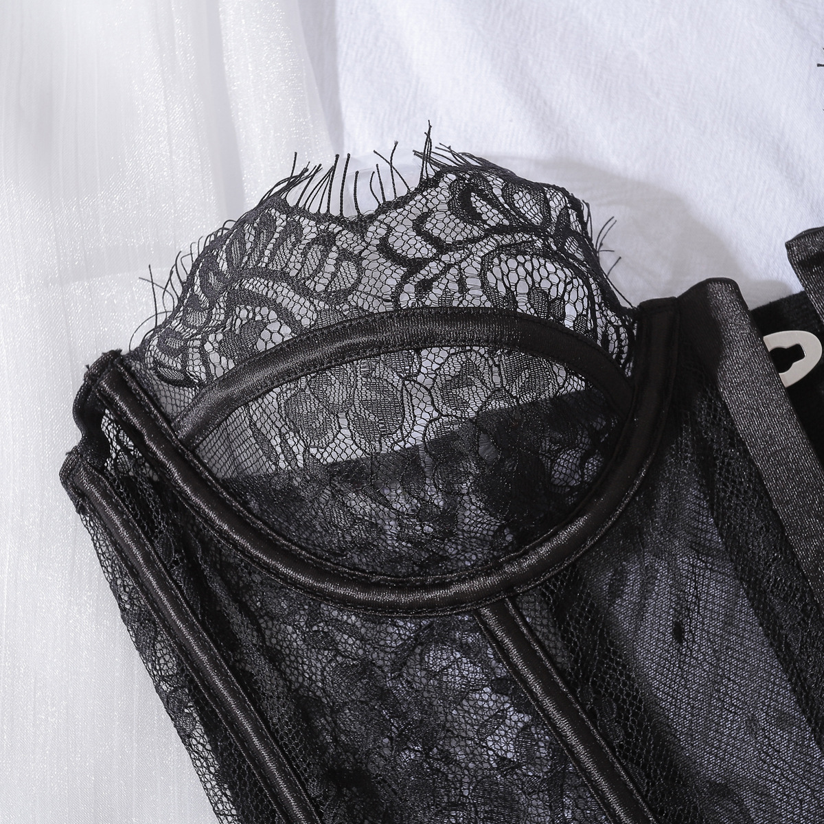 Kevyt, hengittävä kangas tekee tästä setistä yhtä mukavan kuin se on viettelevä. Tämä korsetti ei piiloudu – se juhlistaa jokaista yksityiskohtaa, joka tekee sinusta sinut.