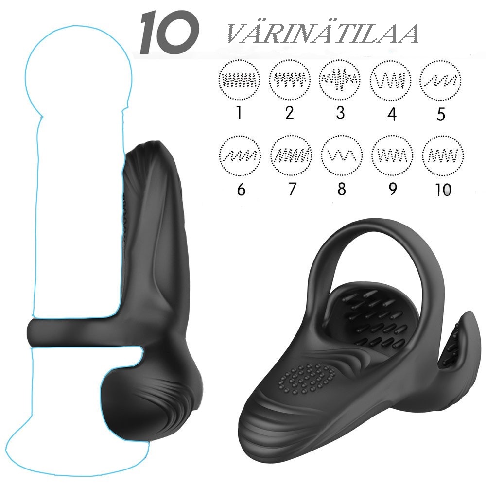 Vibroiva miesten silikonirengas, joka tarjoaa miellyttävää stimulaatiota ja useita värinätiloja. Saatavilla myös kaukosäätimellä