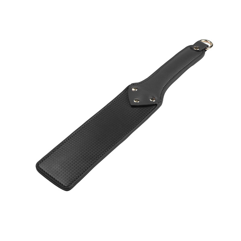Napakka, kevyesti joustava iskuväline intensiivisiin dominanssileikkeihin. Musta keinonahkapinta tuo selkeän äänen ja terävän tuntuman, joka toimii sekä punition play -hetkissä että sensuellissa kontrollissa.