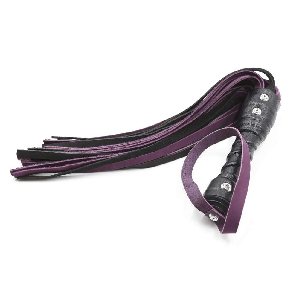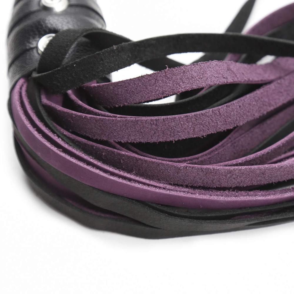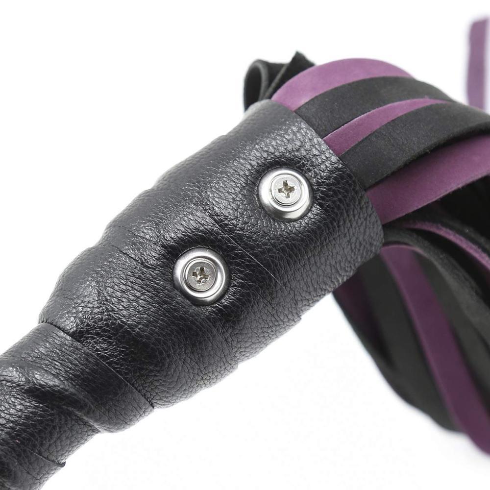 Musta-violetti flogger aidosta nahasta niille, jotka hallitsevat tyylillä. Pehmeä liike, jämäkkä kahva ja täydellinen tasapaino.