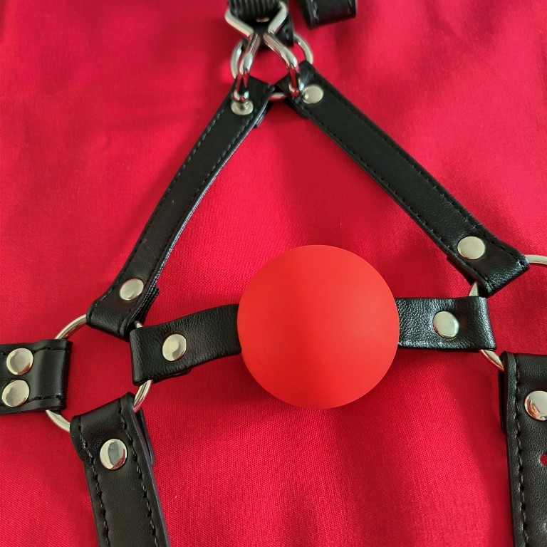 Tämä suupallo-harness nenäkoukulla yhdistää perinteisen ball gag -rakenteen ohjaavaan lisäelementtiin. 5 cm kokoinen suupallo tarjoaa selkeän mutta hallitun tuntuman, ja nenäkoukku lisää kokonaisuuteen asennon ja liikkeen ohjausta ilman painetta nenänvarteen tai suupieliin.