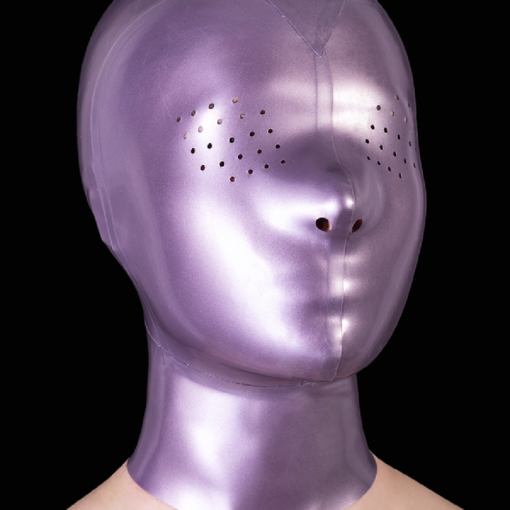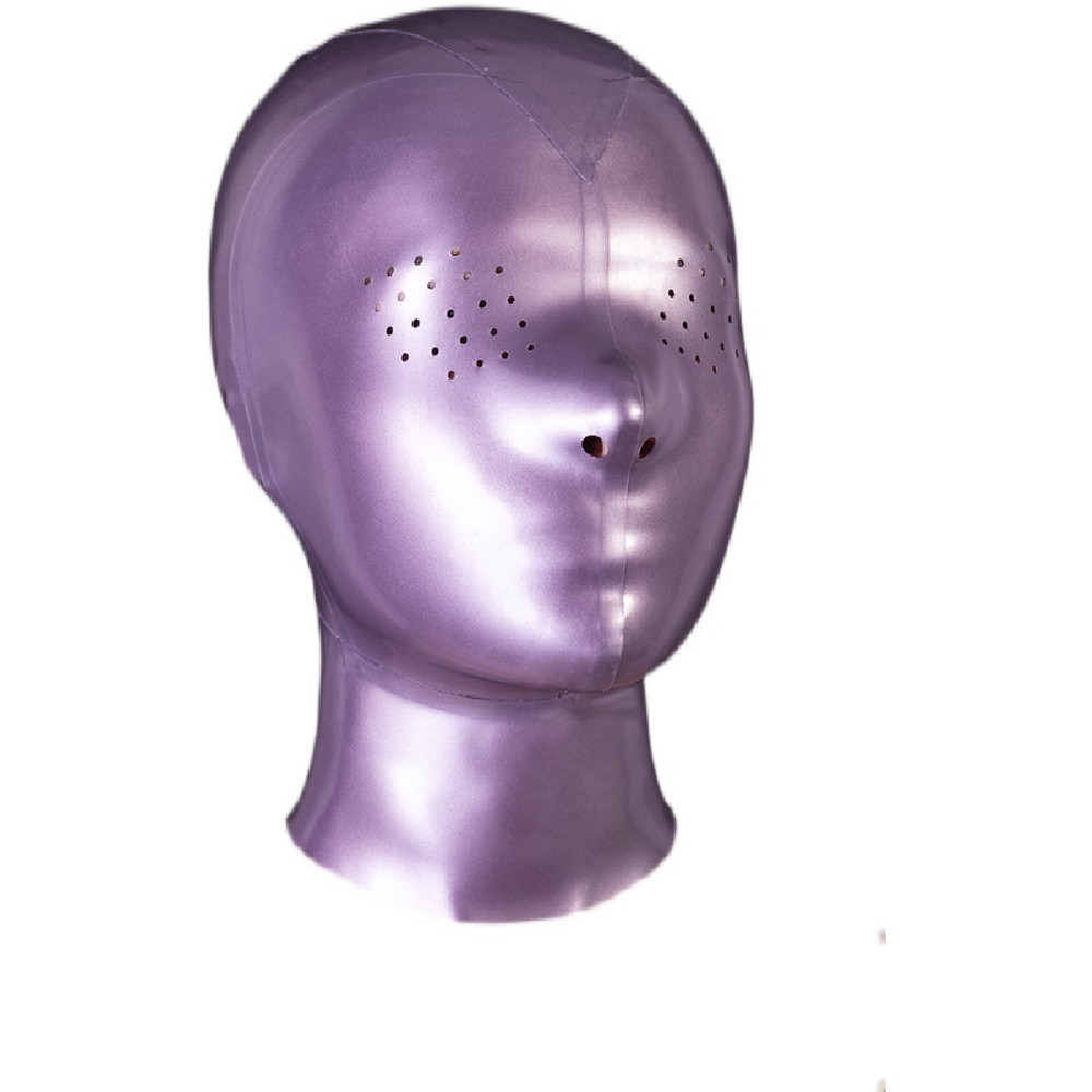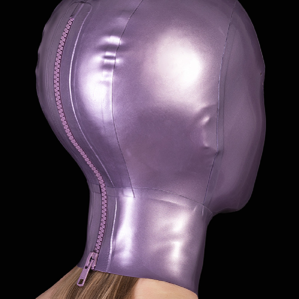 Tämä violetti latex-huppu sopii niille, jotka etsivät täydellistä anonymiteettiä ja aistikokemuksen voimistumista – ja tietysti tiettyä väriä. Sileä, kiiltävä pinta myötäilee kasvoja tiiviisti ja poistaa ilmeet, katseen ja tunnistettavat piirteet – jäljelle jää vain muoto ja tunne.